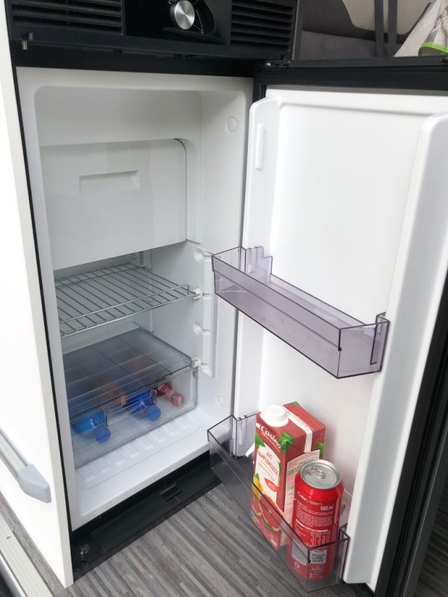 Con frigorifero a compressore 84 l, tavolo a libro, toilette ad «ambienti separati» e doppio letto matrimoniale posteriore. Cabina open space Letto superiore asportabile Letto inferiore con rete sollevabile