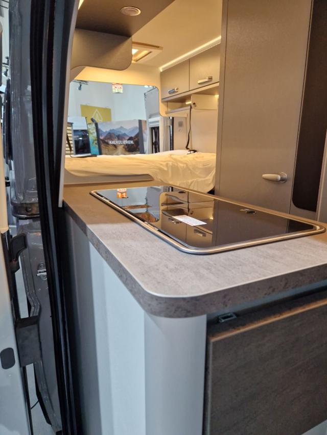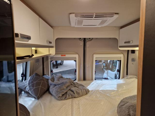 Finestra a compasso, con oscurante e zanzariera (vano toilette) • Grondaia sopra portellone scorrevole dotata di illuminazione a LED • Predisposizione radio incl. 2 altoparlanti nella zona giorno • Piano di lavoro cucina con prolunga ribaltabile e 2 portaborse • Tavolo girevole (singolarmente – senza letto ospiti) • Tende a rullo Combi con zanzariera ed oscuranti sui portelloni posteriori • Fendinebbia anteriori con luce di svolta • Topper per materasso • Lampade leggilibro in cabina guida • Presa SCHUKO 230 V supplementare (1 pezzo), zona dinette...